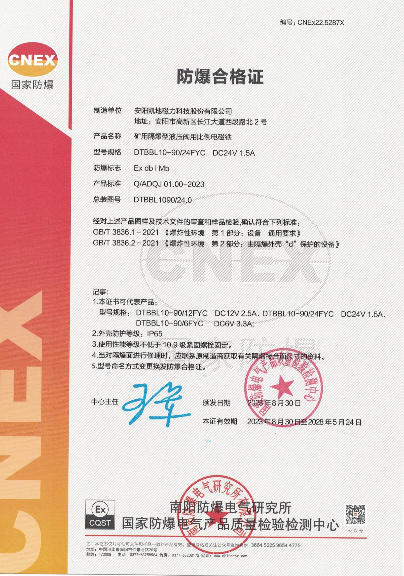 CNEx22.5287X DTBBL10-90FYC I 類 防爆合格證